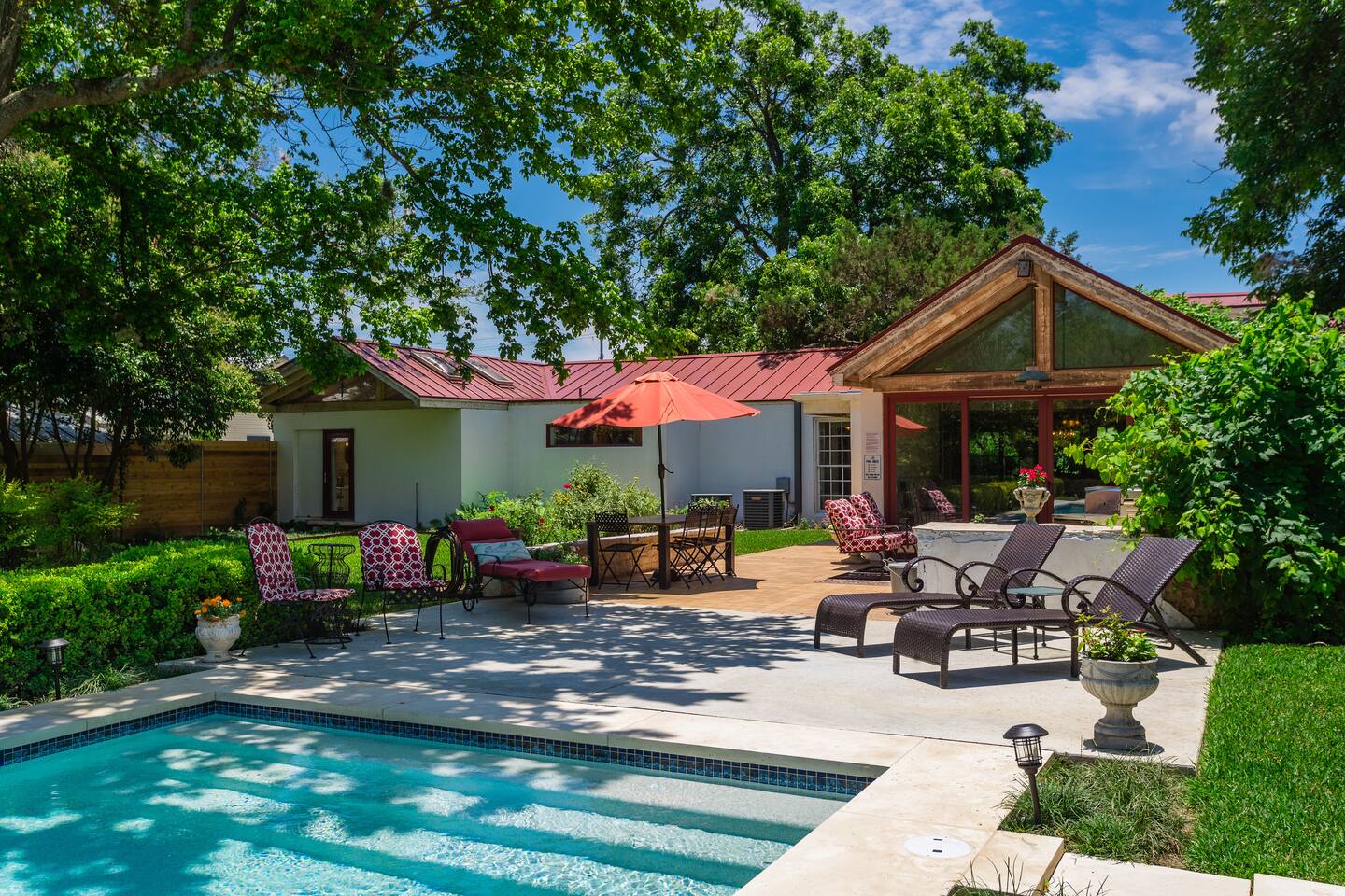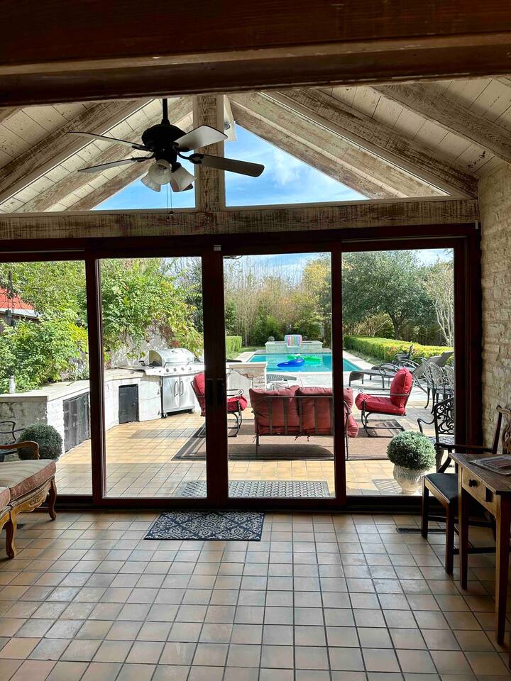 Sweet Escape Amenities Include: -Private Historic Estate Home, Completely Renovated for Luxury -Gourmet Kitchen with full refrigerator, Microwave, Gas 6 burner stove with griddle and double oven, and Coffee Maker (Regular & k-cup) -Private Pool & Hot Tub in Backyard overlooking an Old Red Barn(Pool can be heated for add'l fee). -Amazing Architectural Details & Antiques -Wireless Internet -Front Porch with Rockers -4 Bedrooms (K, K, Q and 2 Q beds) and 3 baths -Dining room table for 10 and 3 barstools at the Breakfast bar - 2 Living Areas (both with 55in TVs) - Study with game table and lots of games! - Pool table in the billiard room - TVs in Loft Bedroom and Master Bedroom - Pullout Q sofa bed in the Living room and a day bed in the study( best for kids!) Permit #8056001800