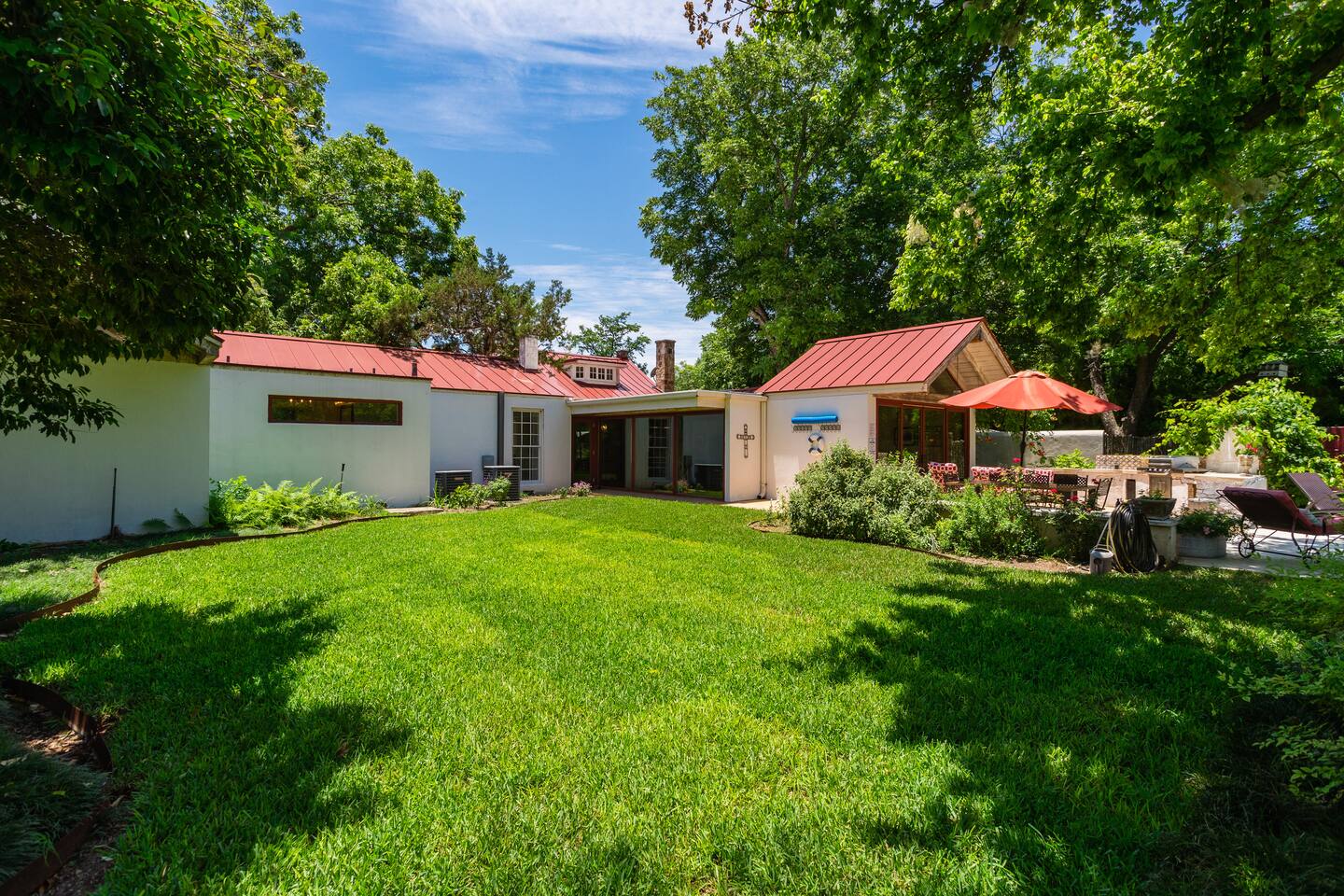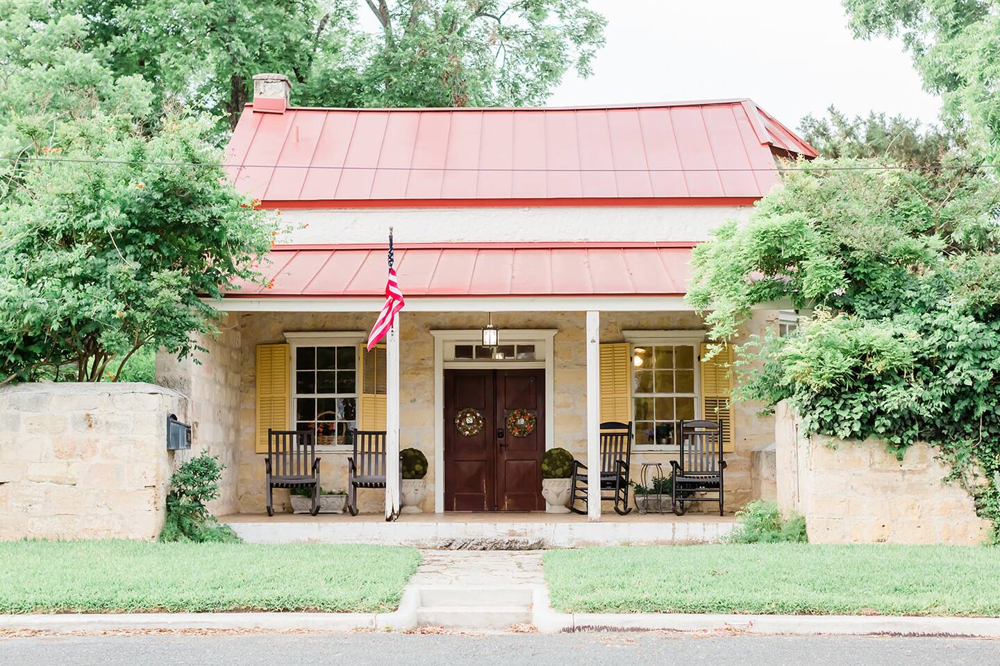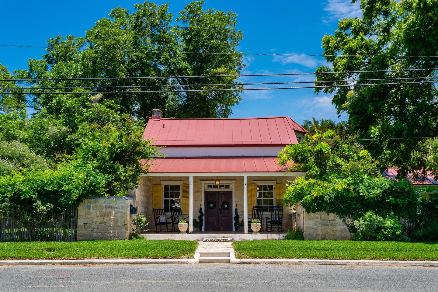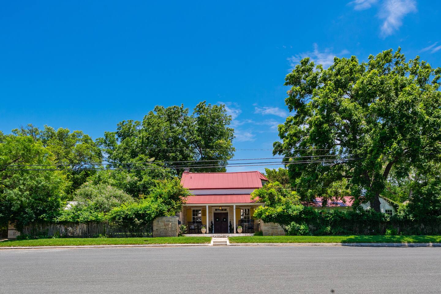 The property is in a historic area, 1 block from Main St. and about 6 blocks from the center of town (Marketplatz). The house is located on 2/3 of an acre in town. The neighborhood is part residential and part B&Bs with primarily historic Fredericksburg style architecture.