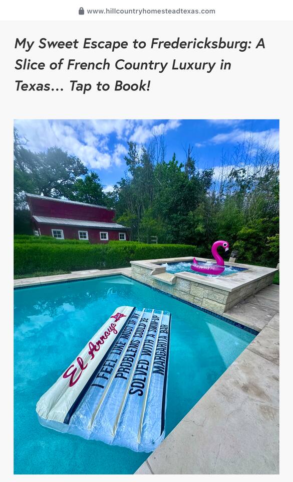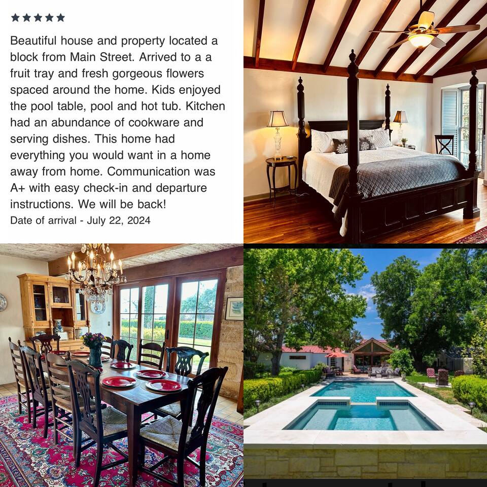 Hot tub Heating is Included in room rate. Pool Heating to @ 86-88° is optional, but is $75/night (March-Nov)Or $100/night (Dec-Feb) x # of reserved nights. Partial heating is not allowed since we start heating pool days in advance of stay. If extreme weather (below 40s), owner will turn off pool heat and pool heating fee will be refunded. We partner with services below to elevate your stay! Please contact Jill for their contact info! 1. Photo Session- Whether it's a bachelorette/ girls weekend, a family gathering or even an engagement, Mayra is ready to capture your special moments! Mayra Eads Photography 2. In-House Massages: - Mountain Massage, Mobile Massage Therapy OR Fredericksburg Therapeutic Massage 3. In-House Facials: Beauty on the Burg-Dana will make you feel pampered with her 1 hr or mini-facials! 4. PicNGo Picnics can decorate your space, arrange for specialty food, or even deliver groceries before your arrival for Bachelorettes, Birthdays and special events ( we love hosting wedding weekends!) 5. Private Chefs- ask Jill if you are interested! Range from good to gourmet depending on price point! 6. Wine Tours or Transportation: 290 TxTours- ask us for code for a discount! Van for up to 11 people, driver, snacks, waters included. Wine tasting fees extra. IMPORTANT: DO NOT RENT THIS HOUSE if you plan on having loud or late night partying/pool use. CITY QUIET HOURS are 10pm-7 am (and neighbors will REPORT YOU). The City is cracking down on all noise violations so POOL and HOT TUB USE ENDS at 10pm and we ask that you bring the guests INSIDE the house at 10pm.
